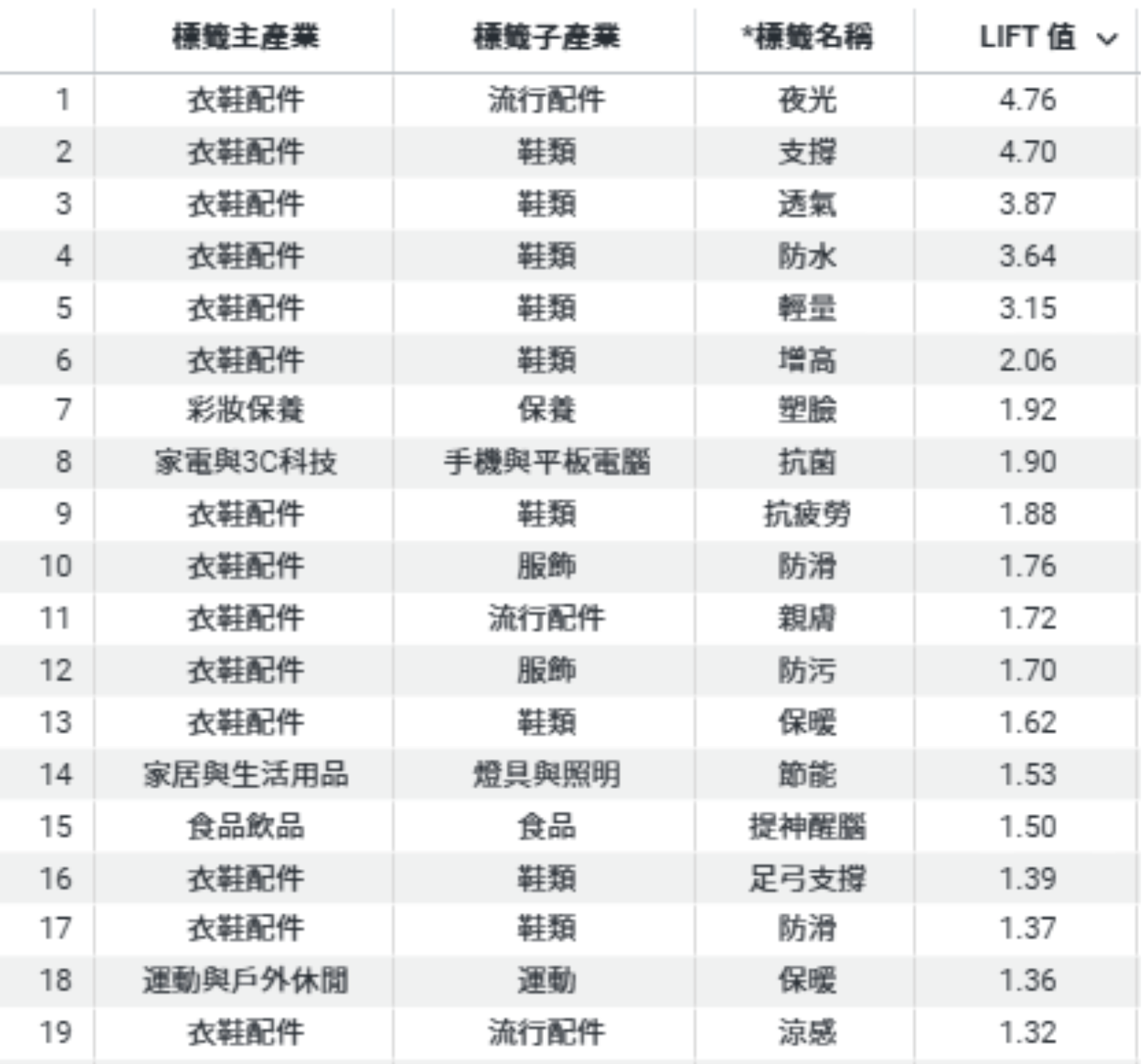 透過這些標籤加上「購物籃關聯分析」,我們能看出很多有趣的消費者偏好。例如:買了某款基礎休閒鞋的客人,下一單通常不是買同款不同色,而是會去買防護配件或其他機能鞋款。有了這些科學化的標籤洞察,行銷團隊在換季大促時,就能提前佈局最符合消費者當下意圖的商品組合,不再靠瞎猜。